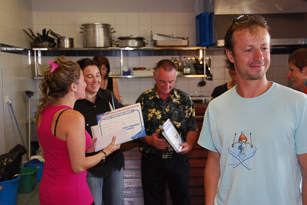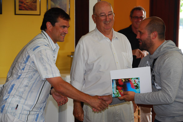 1. Quelle belle soirée !! Merci encore à nos amis basques d’avoir su tous nous réunir pour ce bon moment de convivialité. L’hiver est là et notre pauvre Hurugarrena va prendre des congés bien mérités. Encore cette année il ne nous a pas trahi et a fait la joie de tous les plongeurs malgré un petit caprice de début de saison vite oublié. Vous le retrouverez avec un moteur neuf mais toujours un de ses pilotes usagé !!… mais qui aura toujours le plaisir de vous voir embarquer pour de nouvelles aventures et veillera sur votre sécurité du mieux qu’il pourra. Consolons-nous, nos amis basques d’Hendaye vont nous concocter de belles soirées festives qui feront passer l’hiver plus vite.. et les « béarnais » vous proposeront des journées ski. A trés bientôt de se voir. Amitiés.