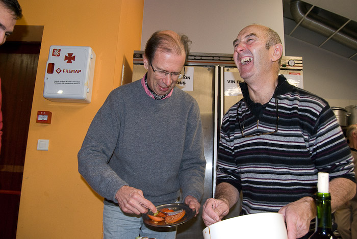 1. Quelle belle soirée !! Merci encore à nos amis basques d’avoir su tous nous réunir pour ce bon moment de convivialité. L’hiver est là et notre pauvre Hurugarrena va prendre des congés bien mérités. Encore cette année il ne nous a pas trahi et a fait la joie de tous les plongeurs malgré un petit caprice de début de saison vite oublié. Vous le retrouverez avec un moteur neuf mais toujours un de ses pilotes usagé !!… mais qui aura toujours le plaisir de vous voir embarquer pour de nouvelles aventures et veillera sur votre sécurité du mieux qu’il pourra. Consolons-nous, nos amis basques d’Hendaye vont nous concocter de belles soirées festives qui feront passer l’hiver plus vite.. et les « béarnais » vous proposeront des journées ski. A trés bientôt de se voir. Amitiés.