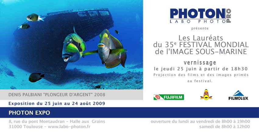 Expo photo à Toulouse du 25 Juin au 24 Août 20 juin 2009 / Mikel / Leave a comment Bonjour à tous, Une exposition photo consacrée aux lauréats du 35ème Festival Mondial de l’Image sous-marine se déroulera tout cet été à Toulouse, du 25 Juin au 24 août. Où ? Labo Photo Pro Photon, 8, rue du Montaudran – Halle aux Grains, 31000 Toulouse. Partager Related posts: Expo Photo sous-marine à Toulouse 1er Trophée photo URPEAN, 25 & 26 Juin 2011 Trophée photo URPEAN 16 & 17 Juin 2012 Exposition Photo à Pau Samedi après midi 18 juin et 25 juin toute la journée : Pas de sorties sociétaires
