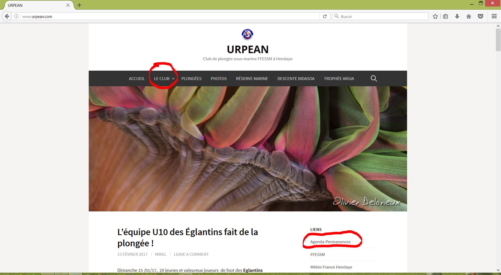 Le Club -> Agenda ou sur le lien (à droite) Agenda-Permanences