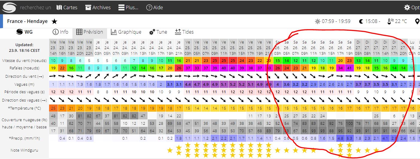 WE du 26 et 27/9, annulation plongées 23 septembre 2020 / Mikel Je vous laisse interpréter les données du WE, mais houle de 3 à 4m, Rafales de 15 à 40 noeuds, pluie, etc…. Les plongées du Samedi 26/9 et Dimanche 27/9 sont annulées. Partager Related posts: Annulation des plongées du 12 et 13 novembre Annulation de certaines plongées du week-end Annulation du dernier week end de plongées de cette saison Annulation des plongées en mer ce week-end 9 et 10 avril Annulation des plongées de ce week-end