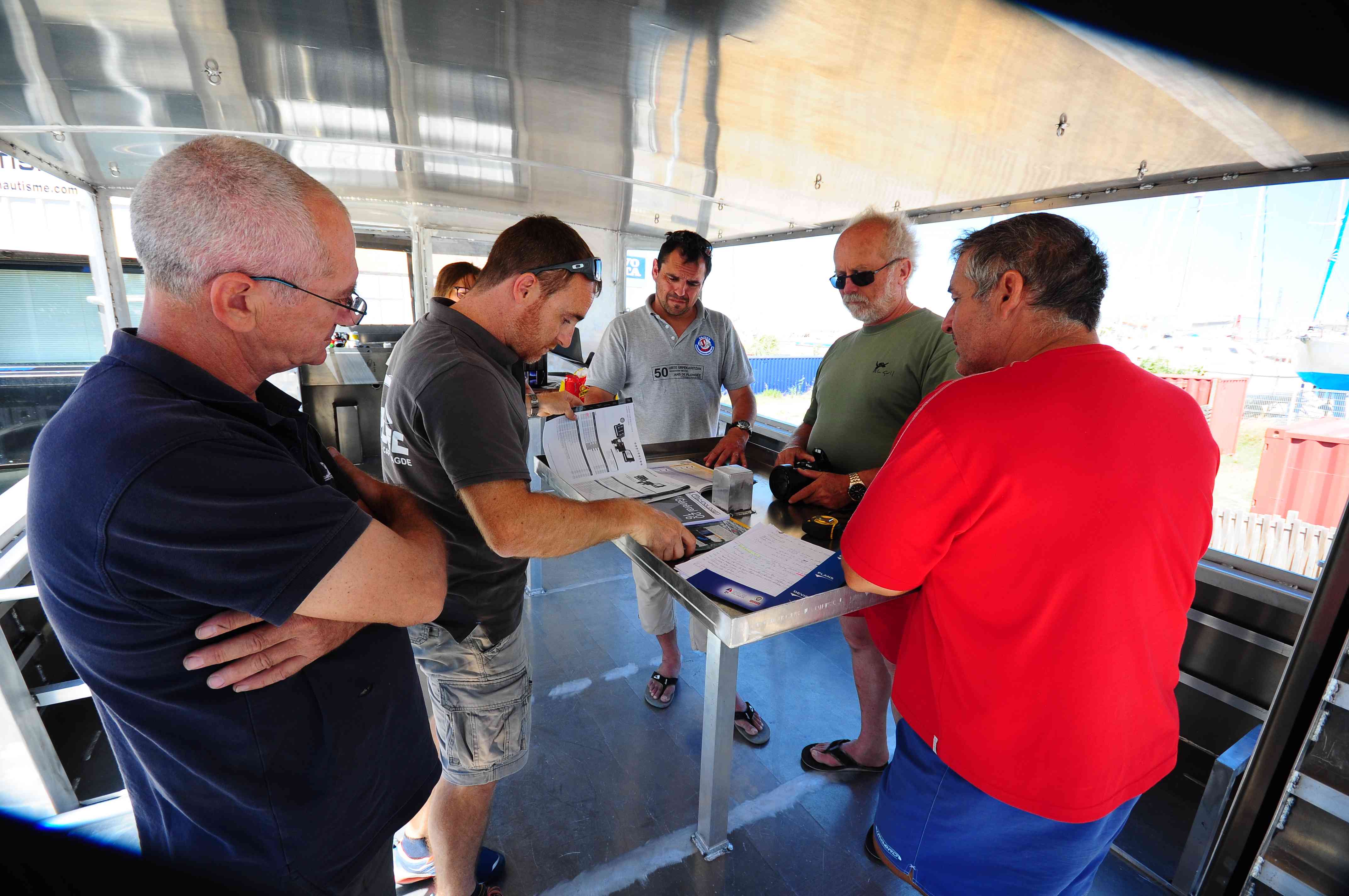 Serge RAOUX (Bateaux GOSSELIN) et Jean-Luc BABEAU (Motoriste) nous ont présenté les travaux réalisés et en cours : On aura un super bateau !!!!